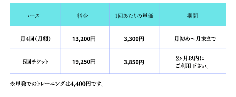 ✔︎遅刻の場合はトレーニング時間が短縮されます。